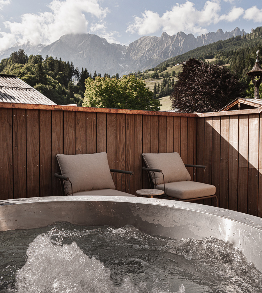 Entspannung pur genießt man im Whirlpool auf dem Rooftop mit Blick auf das atemberaubende Bergmassiv.