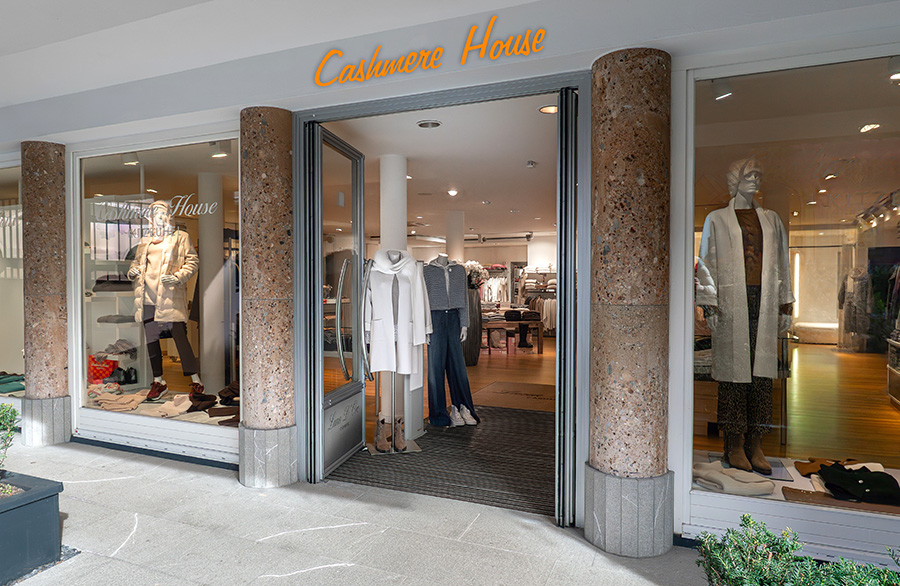 Hundert Quadratmeter Freude breiten sich vor dem Besucher der Boutique aus. Die lächelnde Begrüßung folgt sofort und es entgeht auch dem Fremden nicht, dass sich hier viele Stammkunden wiederfinden. „Darf‘s ein Gläschen Prosecco oder ein Kaffee sein?“ – Gastfreundschaft wird mindestens genauso gelebt, wie die Liebe für das Schöne. Sylvia Schaus-Kaufmann, Walter Kaufmann und ihr herzliches, langjähriges Team wissen, wie die Eigenschaften von Kaschmir auch der Seele schmeicheln. Die Kund:innen des Cashmere House Kitzbühel bekommen also weit mehr als feine Kaschmir-Kollektionen für Damen und Herren, Home-Artikel und Accessoires. „Denn das Besondere liegt im Detail“, verrät die leidenschaftliche Kaschmir-Expertin. „Auf Wunsch produzieren wir auch maßgefertigte Einzelstücke. Dabei kann es sich um Fashion, also Cardigans oder Blusen, genauso wie um eine Decke in Wunschfarbe und -länge handeln.“