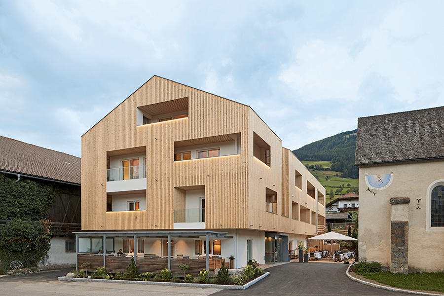 Hotel Tanzer in Südtirol: moderne, helle Elemente mit natürlichen Materialien und traditionellen Komponenten
