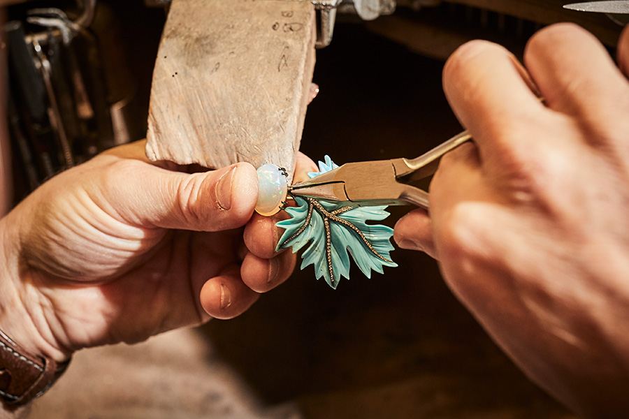 Blätter Ohrringe aus der FLORA & FAUNA Collection im Enstehungsprozess