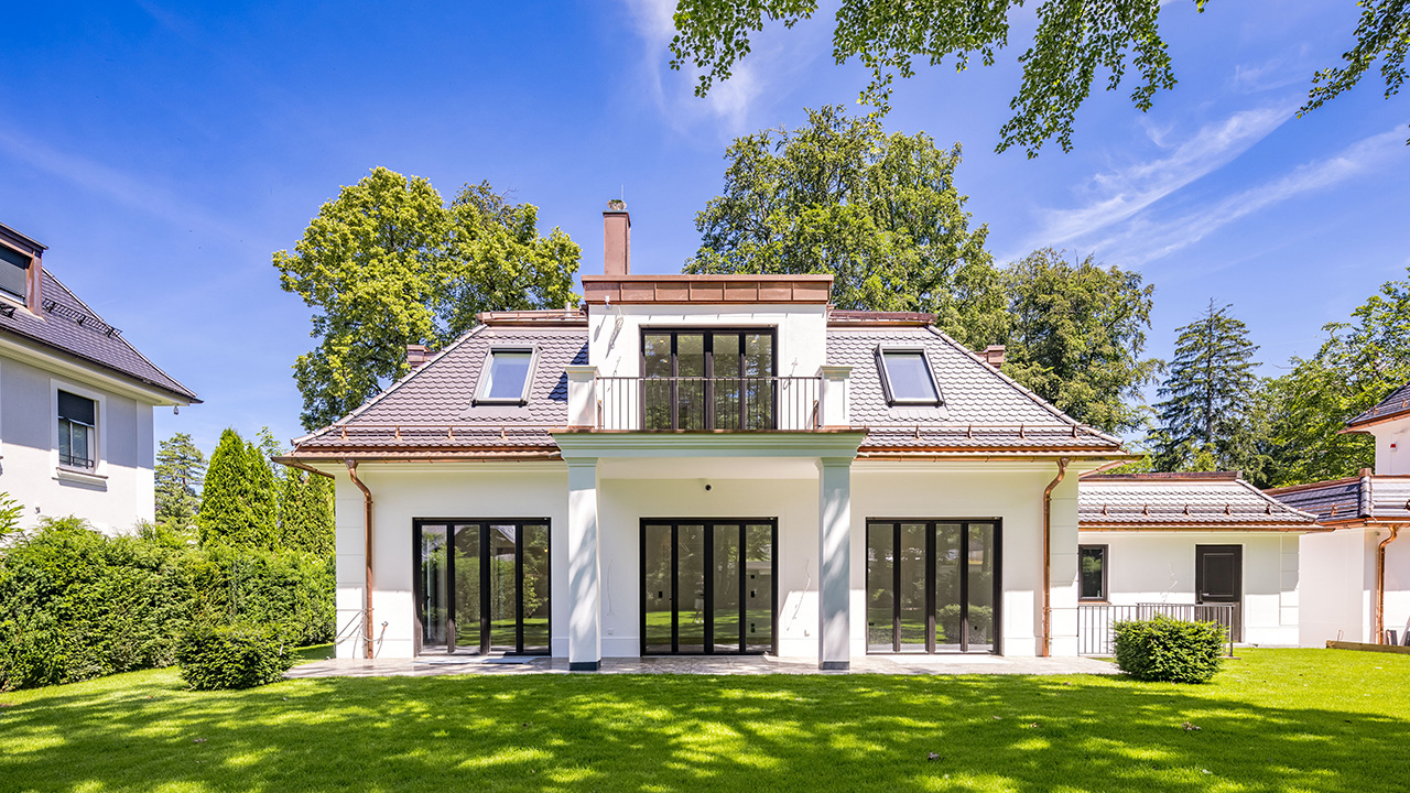 Zeitlose Eleganz und modernes Design prägen diese außergewöhnliche Familienresidenz in einer der schönsten Lagen Grünwalds – auf einem parkähnlichen Premium-Grundstück in direkter Nachbarschaft zum Grünwalder Forst und zum Isarhochufer. Die Immobilie vereint klassische Architektur mit edelsten Materialien und technischer Raffinesse. Weitläufige Zimmerfluchten, eine großzügige Eingangshalle sowie die offene Küche zum Essbereich mit Kamin schaffen ein repräsentatives Ambiente. Ein lichtdurchflutetes Wohnzimmer bildet den Mittelpunkt des Erdgeschosses. Im Obergeschoss befinden sich ein großzügiger Masterbereich mit Bad en suite, zwei helle Kinderzimmer und ein weiteres Badezimmer. Das Untergeschoss bietet einen großen Gästebereich mit Terrasse und Bad sowie einen komfortablen Hobbyraum. Hauswirtschafts- und Kellerräume sowie eine geräumige Doppelgarage schaffen zusätzlichen Stauraum. Der wunderschön angelegte, absolut ruhige Südwest-Garten rundet dieses Haus ab und macht es ideal für Menschen, die Tradition und Moderne ebenso schätzen wie Familienleben und Gastlichkeit. Objekt-Nr.: 6187