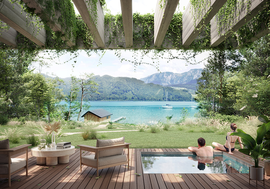Doch die gute Nachricht ist, dass es trotz alledem erwerbbare Immobilien und Neubauprojekte an den österreichischen und bayerischen Seen gibt. Mit Faszination für das Neue und Natürliche hinterlassen Architekt:innen ihre feine Handschrift an den Seen. Sie realisieren Designs im Einklang mit der Natur – als wären Landschaft und Haus schon immer eine Einheit gewesen. Große Glasflächen öffnen den Blick auf das Wasser. Terrassen schweben über dem Ufer. Stege führen sanft in die Weite. Architektur tritt vielerorts in einen achtsamen Dialog mit Licht, Wasser und Horizont.