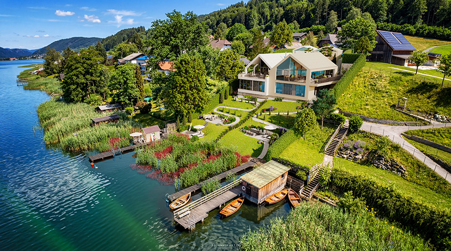 Ebenso interessant ist auch, dass der Trend vom Wohnen am See auch von Städtern verfolgt wird. Sie möchten ihr Leben am Wasser nicht nur auf ländliche Regionen beschränken, sondern in ihr tägliches Leben integrieren. So boomen etwa in Wien Wasserlagen an der Alten Donau, in Kaisermühlen oder in der Seestadt Aspern. In Klagenfurt befinden sich die begehrten Wohnlagen dort, wo Stadt und Wasser ineinanderfließen: entlang des Lendkanals, in den grünen Villenlagen von St. Martin oder im lebendigen Waidmannsdorf – nur wenige Minuten vom Ufer des Wörthersees entfernt. Ähnlich verhält es sich in Bregenz. Die direkte Uferzone rund um Hafen, Seebühne und Promenade gehört zu den exklusivsten Wohnlagen der Stadt am Bodensee.