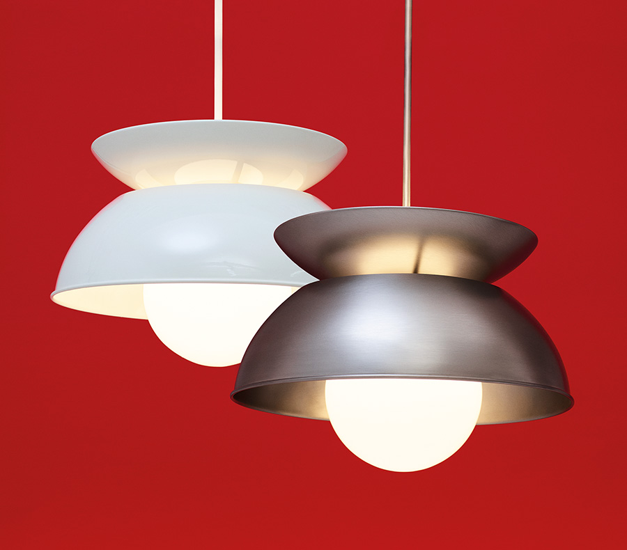 … von Vico Magistretti ist ein herausragendes Beispiel für minimalistische und expressive Gestaltung. Der Architekt und Designpionier gestaltete die Hängeleuchte aus zwei identisch geformten Halbkugeln aus lackiertem Metall: Die kleinere Halbkugel zeigt dabei nach oben und reflektiert indirektes Licht zur Decke, die untere trägt eine sichtbare Glaskugel, die diffuses Licht sanft im Raum verteilt. Erhältlich ist Cetra stilvoll weiß lackiert oder in industriell anmutender Nickeloptik – als perfekte Synthese aus Design, Material und ausgeklügelter Technik steht sie für die Essenz von Magistrettis Designkunst.