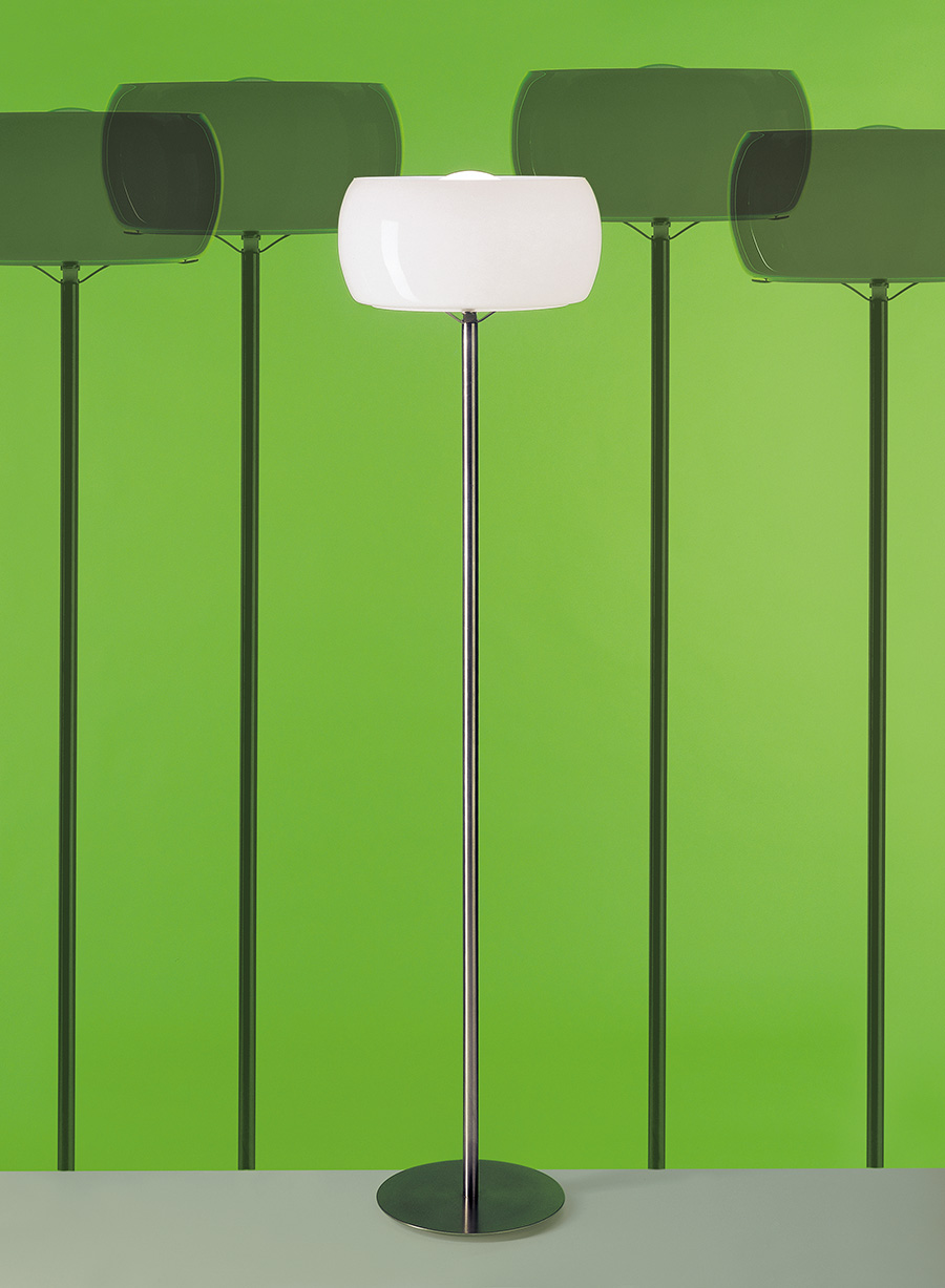 Zu den frühesten und populärsten Kreationen, die Vico Magistretti für Artemide schuf, gehören die Pendelleuchte Omega und die Stehleuchte Clitunno – zwei Leuchten, die bis heute nichts von ihrer schlichten Schönheit verloren haben. Omega zeichnet sich durch ausgewogene Proportionen aus, wobei der Diffusor aus mundgeblasenem Glas den Entwurf um eine edle Komponente ergänzt und weiches, gleichmäßiges Licht garantiert. Clitunno übersetzt dieselben Prinzipien in eine Stehleuchte.