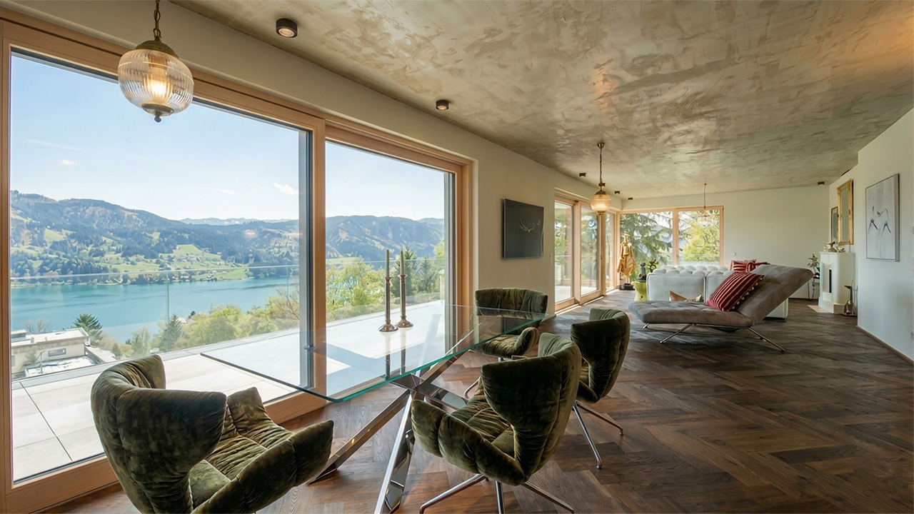 Ein Refugium für Menschen mit Stil. Der Millstätter See zählt zu den besonderen Plätzen in den Alpen, an denen Natur, Ruhe und Lebensqualität eine seltene Einheit bilden. Eingebettet zwischen den sanften Nockbergen und dem glitzernden See entsteht ein Wohngefühl, das Rückzugsort und Inspirationsquelle beinhaltet. Über den Dächern von Millstatt präsentiert sich dieses Penthouse als privater Lebensraum mit Stil, Großzügigkeit und diskreter Exklusivität. Rund 142 m² Wohnfläche und eine großzügige Südterrasse schaffen eine Atmosphäre, die eher an ein eigenständiges Haus erinnert. Lichtdurchflutete Räume, bodentiefe Fenster und ausgewählte Materialien verbinden Architektur und Landschaft zu einem harmonischen Ganzen. Das Herzstück bildet der offen gestaltete Wohn- und Essbereich mit maßgefertigter Designküche, Kochinsel und hochwertiger Geräteausstattung. Ein offener Kamin setzt einen eleganten Akzent und verleiht dem Raum eine warme, ruhige Atmosphäre. Edle Räuchereichenböden mit Fischgrätmuster, Tischlereinbauten und eine fein abgestimmte Lichtplanung unterstreichen den anspruchsvollen Charakter dieser Immobilie. Drei Schlafzimmer bieten Raum für individuelle Lebenskonzepte. Besonders außergewöhnlich ist der private Wellnessbereich mit Sauna, Fitnesszone sowie Blick auf den See und die Bergwelt. Ergänzt wird das Raumkonzept durch ein stilvolles Masterbad, großzügige Nebenräume sowie modernste Haustechnik mit Fußbodenheizung, Deckenkühlung und Smarthome-Steuerung. Die weitläufige Sonnenterrasse wird zum privaten Freiluftwohnzimmer. Hier verschmelzen Innen- und Außenraum zu einem Ort der Ruhe, während der Blick über Millstatt und den See jeden Moment zu etwas Besonderem macht.