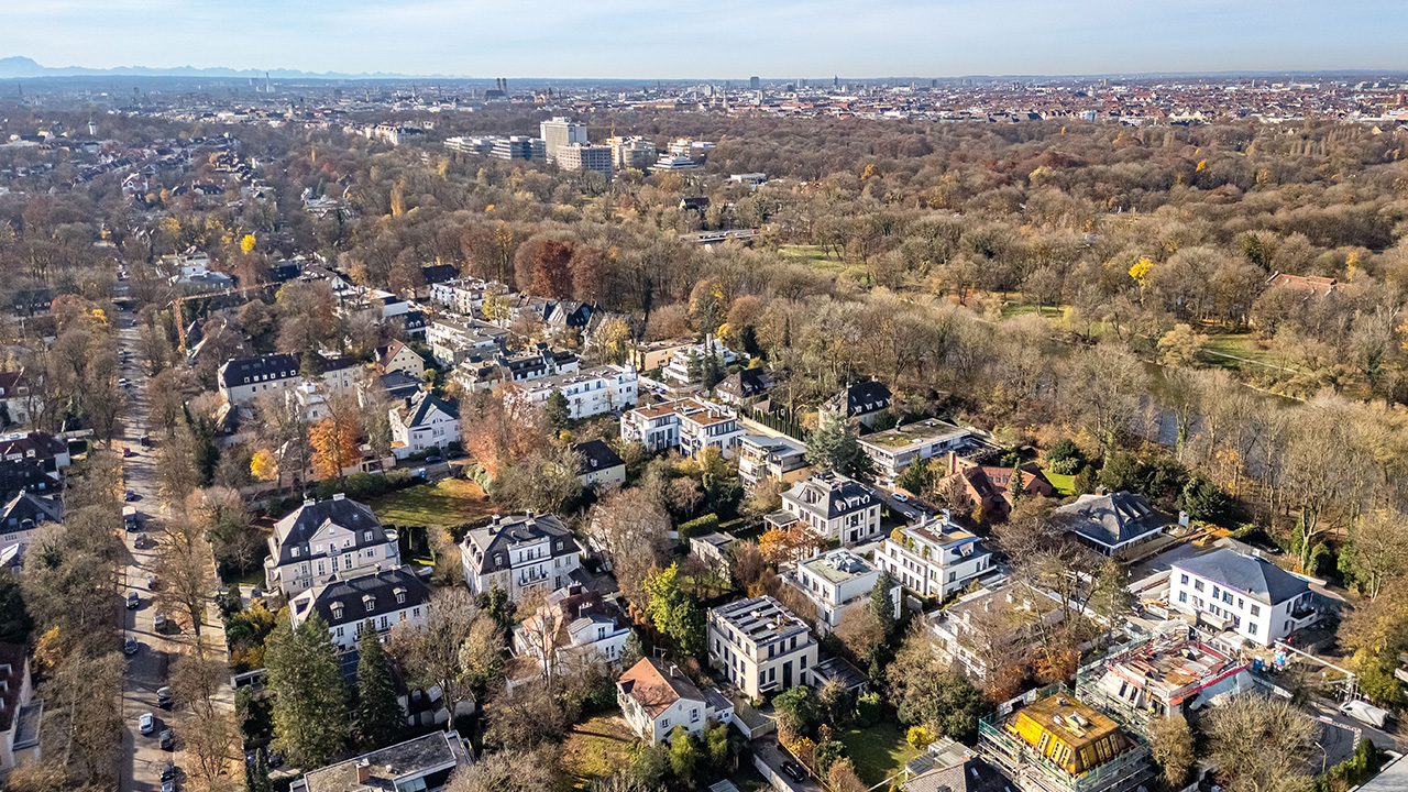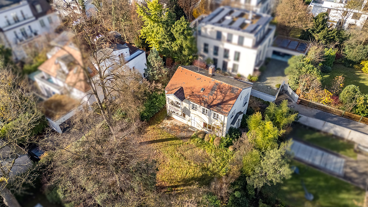 Dieses exklusiv von uns angebotene, 871 m² große Baugrundstück befindet sich in vornehmster Bogenhausener Lage, eingebettet in den noblen Herzogpark und nur wenige Schritte vom Isarhochufer entfernt. Die Umgebung wird von einer beeindruckenden, hauptsächlich historischen Villenbebauung geprägt. Das Grundstück befindet sich als sogenanntes Hammergrundstück in zweiter Reihe und wird von viel Grün umgeben. Ein rund 40 Meter langer, privater Stichweg führt von einer ruhigen Anwohnerstraße zu dem Grundstück. Dank dieser außergewöhnlich vorteilhaften räumlichen Anordnung ist ein hohes Maß an Diskretion, Abgeschirmtheit und Ruhe gegeben. Auf dem angebotenen Grundstück befindet sich derzeit Altbestand, der wirtschaftlich wie technisch nicht erhaltenswert erscheint. Von einem renommierten, langjährig erfahrenen Architekturbüro wurde eine Villenplanung erarbeitet, die das besondere Potenzial und die Entwicklungsmöglichkeiten dieses Grundstücks verdeutlicht. Demnach ist eine luxuriöse Einfamilienvilla mit ca. 606 m² Wohnfläche denkbar. Es liegt bereits ein positiver Vorbescheid vom 19.02.2025 vor. Die einmalige Kombination aus unvergleichlicher Spitzenlage, der weit zurückversetzten Positionierung und dem höchst interessanten Bebauungspotenzial macht dieses Grundstück zu einer Rarität im nobelsten Herzogpark.