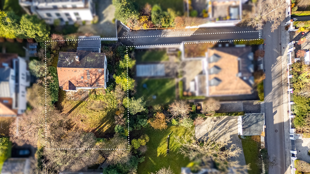 Dieses exklusiv von uns angebotene, 871 m² große Baugrundstück befindet sich in vornehmster Bogenhausener Lage, eingebettet in den noblen Herzogpark und nur wenige Schritte vom Isarhochufer entfernt. Die Umgebung wird von einer beeindruckenden, hauptsächlich historischen Villenbebauung geprägt. Das Grundstück befindet sich als sogenanntes Hammergrundstück in zweiter Reihe und wird von viel Grün umgeben. Ein rund 40 Meter langer, privater Stichweg führt von einer ruhigen Anwohnerstraße zu dem Grundstück. Dank dieser außergewöhnlich vorteilhaften räumlichen Anordnung ist ein hohes Maß an Diskretion, Abgeschirmtheit und Ruhe gegeben. Auf dem angebotenen Grundstück befindet sich derzeit Altbestand, der wirtschaftlich wie technisch nicht erhaltenswert erscheint. Von einem renommierten, langjährig erfahrenen Architekturbüro wurde eine Villenplanung erarbeitet, die das besondere Potenzial und die Entwicklungsmöglichkeiten dieses Grundstücks verdeutlicht. Demnach ist eine luxuriöse Einfamilienvilla mit ca. 606 m² Wohnfläche denkbar. Es liegt bereits ein positiver Vorbescheid vom 19.02.2025 vor. Die einmalige Kombination aus unvergleichlicher Spitzenlage, der weit zurückversetzten Positionierung und dem höchst interessanten Bebauungspotenzial macht dieses Grundstück zu einer Rarität im nobelsten Herzogpark.