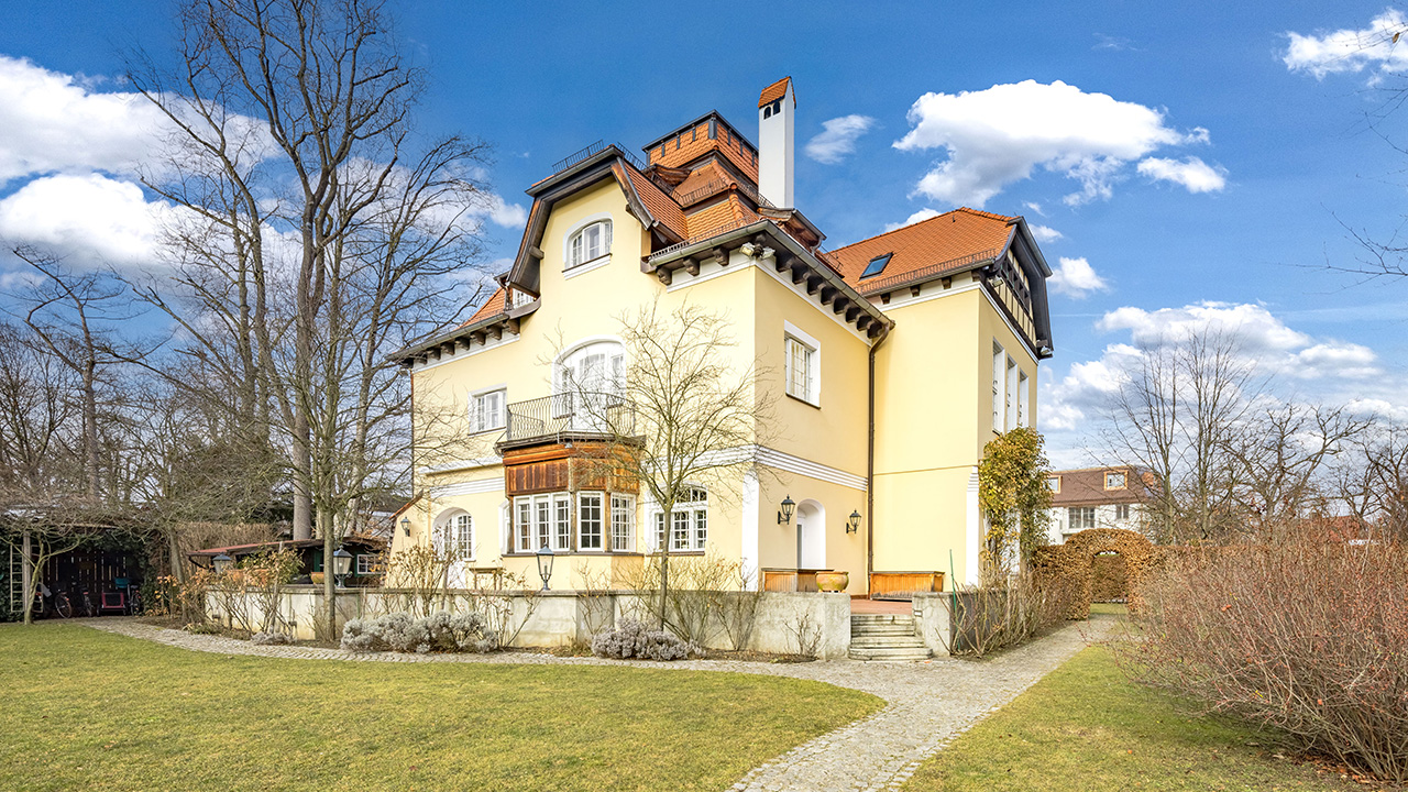 Dieses Architektenhaus von Richard Riemerschmid, Mitbegründer des Deutschen Werkbunds, zählt zu den bedeutenden Villen-Ensembles seiner Zeit. Die denkmalgeschützte Anlage mit Haupthaus, Ateliergebäude, Wirtschaftstrakt und Park wurde von 2007 bis 2011 aufwändig restauriert und sensibel mit moderner Wohntechnik ausgestattet. Das Haupthaus beeindruckt mit großzügiger Empfangshalle, Kaminzimmer, Herrenzimmer, sechseckigem Erker sowie einem Atelier mit 4,12 Metern Raumhöhe und Balkon. Im Dachgeschoss eröffnet sich ein Panorama von der Blutenburg bis zu den Alpen. Das Ateliergebäude mit historischem Zeichensaal eignet sich ideal für Veranstaltungen oder Büros und wird durch Appartements im Dachgeschoss ergänzt. Der Wirtschaftstrakt umfasst eine moderne Küche, ein Frühstückszimmer, ein Appartement sowie ein historisches Dienstbotenbad. Inspiriert vom Arts and Crafts Movement vereint diese architektonische Ikone lichtdurchflutete Räume, historischen Charme und zeitgemäßen Komfort auf außergewöhnliche Weise. Objekt-Nr.: 6769