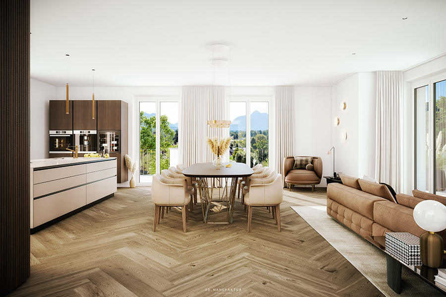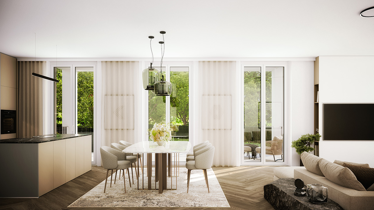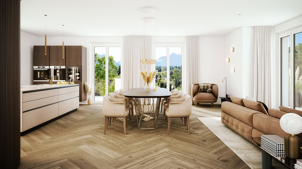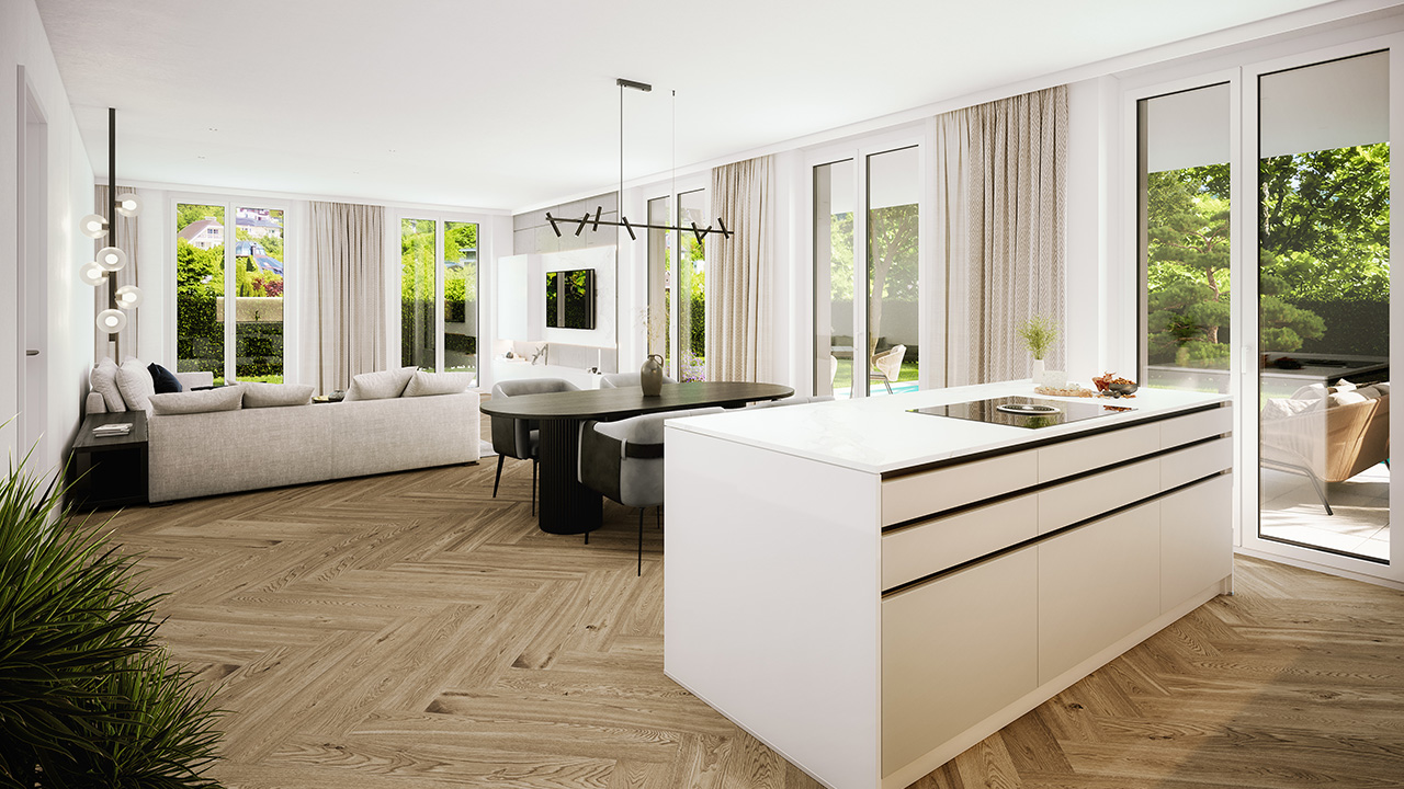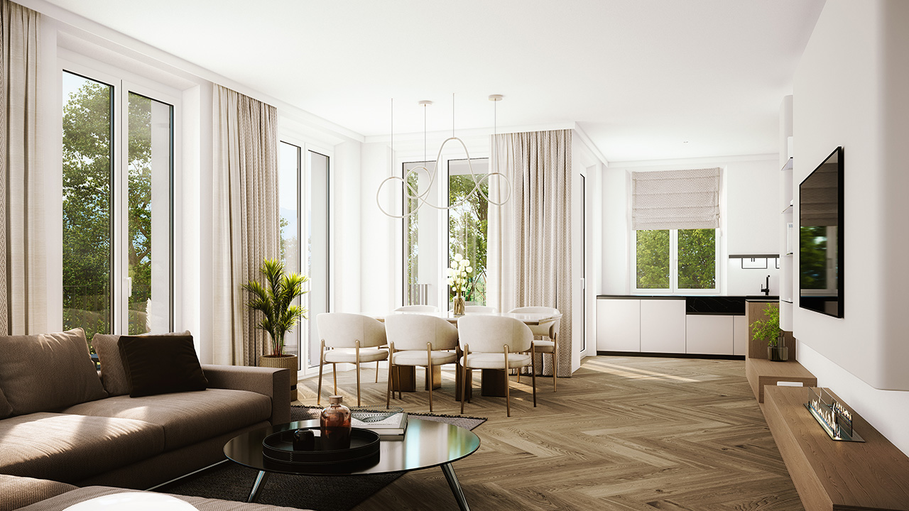 Mit nur fünf exklusiven Wohneinheiten ist Palladio ein wahres Juwel des gehobenen Wohnens. Das architektonische Konzept verbindet klassische Villenarchitektur mit klarer, zeitgemäßer Formensprache. Großzügige Fensterfronten fluten die Räume mit Licht und schaffen eine Atmosphäre von Offenheit und Geborgenheit. Jede Wohnung wurde individuell geplant – für Menschen mit höchsten Ansprüchen an Qualität und Design. Baustart ist im Frühjahr 2026.