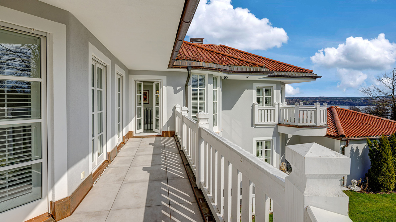 Diese außergewöhnliche Villa überzeugt durch Großzügigkeit, moderne Ausstattung und den Blick auf den Starnberger See – ein echtes Unikat in dieser begehrten Lage. Das nach Nordwesten ausgerichtete Grundstück fällt nach Osten hin ab, wodurch sich aus dem Obergeschoss ein beeindruckender Seeblick eröffnet. Die 1985 massiv erbaute Villa wurde 2020 kernsaniert und 2025 im Untergeschoss modernisiert. Sie bietet durchdachte Grundrisse, lichtdurchflutete Räume und moderne Haustechnik. Beheizt wird über eine Viessmann-Gaszentralheizung mit überwiegender Fußbodenheizung. Fenster, Elektrik, Drainagen und Fassade wurden erneuert. Im Eingangsbereich befindet sich eine Doppelgarage mit zwei Stellplätzen; weitere Parkmöglichkeiten sind davor vorhanden. Der nach Südwesten gelegene Garten bietet viele Sonnenstunden, eine gepflegte Rasenfläche, dekorative Bepflanzung und eine dichte, immergrüne Hecke für Privatsphäre. Die Terrassen sind hochwertig gestaltet – ein Außenpool wäre problemlos realisierbar. Das Entrée mit Gäste-WC, eleganter Halle und offenem Treppenaufgang führt in den großzügigen Wohn- und Essbereich mit Zugang zu Terrasse und Garten. Eine moderne Küche sowie ein Arbeitszimmer ergänzen das Erdgeschoss. Im Obergeschoss befinden sich drei Schlafzimmer, eine Ankleide und zwei Bäder – alle mit Balkonzugang. Besonders hervorzuheben ist der rund 26 m² große Südbalkon. Das Untergeschoss bietet vielseitige Nutzungsmöglichkeiten: Gästebereich mit Duschbad, Wohn- und Schlafraum, Waschküche sowie einen großzügigen Hobby- oder Fitnessraum – auch für einen künftigen Indoorpool geeignet. Ein Dachausbau oder eine Dachterrasse würde einen einmaligen Panoramablick über die Umgebung und den See eröffnen.