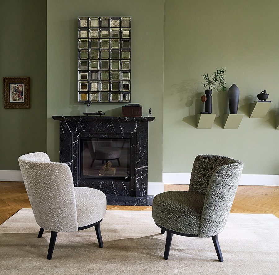 Ein weiteres Merkmal der Kollektion ist ihre farbliche Bandbreite. Ob als Statement in Schwarz-Weiß-Kontrasten oder dezent eingesetzt in Bronze-, Olive- oder Gelbgoldtönen: URBAN SAFARI bietet vielfältige Einsatzmöglichkeiten – passend für moderne Architektur ebenso wie für klassische Interieurs. Die drei ergänzenden Dekorationsstoffe greifen die erzählerische Linie auf, changierend in der Struktur oder als großrapportiger Jacquard. Highlight ist FANCY LEO, eine kunstvolle Neuinterpretation einer Felloptik mit intensivem Dégradé-Effekt – „made in Italy“ aus recycelten Polyester-Garnen. Viele der Qualitäten sind aus synthetischen Fasern gefertigt, die sich als besonders pflegeleicht und strapazierfähig erweisen. Die außergewöhnliche Materialkompetenz von JAB ANSTOETZ Fabrics zeigt sich bei URBAN SAFARI auch in der handwerklichen Umsetzung und der Bandbreite der textilen Techniken – von der geprägten Mikrofaser über den mehrfarbig ausgearbeiteten Flor bis hin zu raffinierten Relief-Oberflächen.