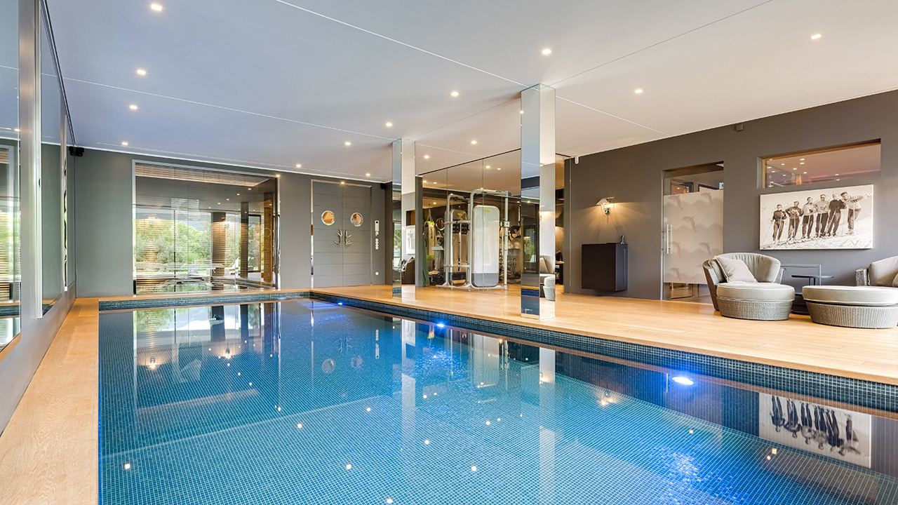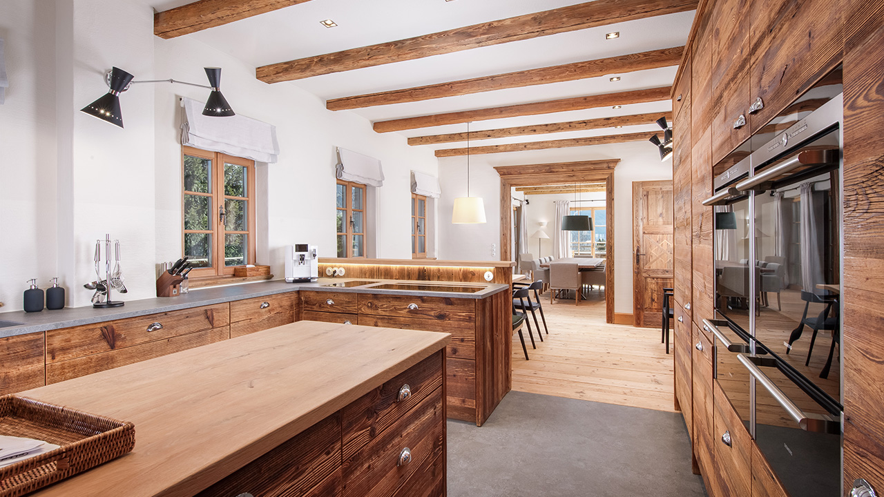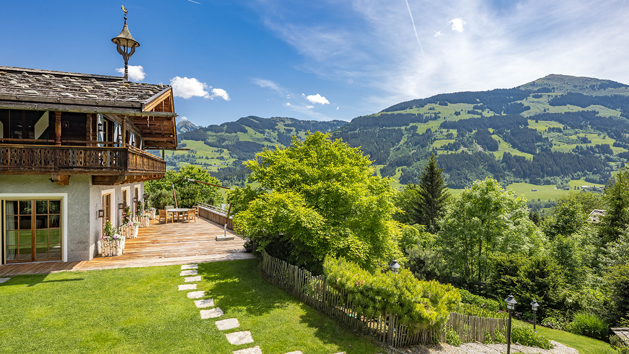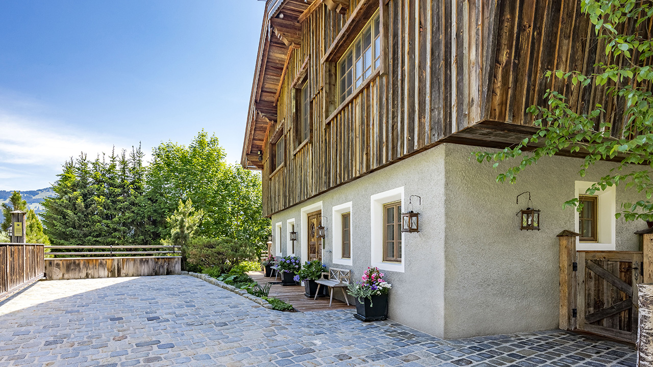 In one of the most beautiful locations in the Kitzbühel region in the village of Jochberg, this unparalleled estate offers far-reaching, un-obstructed views. The chalet is surrounded by high alpine pastures and sumptuous nature, it radiates cosiness through generous use of old, refurbished wood. In just a few minutes by car, you are in Kitzbühel’s centre and at the Eichenheim golf course. The chalet is constructed in traditional style, boasts both a main house and a guest house. The interior is dominated by high ceilings and rooms flooded with light due to grand windows, elegant corridor floors, premium-furnished bathrooms and tasteful use of old, refurbished wood. The ground floor impresses with its spacious living/dining area and a high-quality kitchen of old wood. From both the living room with its open fireplace and the large terrace, one can enjoy stunning views. A wardrobe and library round out the offerings on this floor in the main house. The cosy attic houses four bedrooms with bathrooms and dressing areas. The guest house features a living, kitchen, and dining area with terrace, as well as a generous bedroom on the upper floor. The well-being area includes an indoor and outdoor pool, sauna, fitness studio, quiet zone and massage room on the garden floor. The house has an underground garage with six parking spaces.
