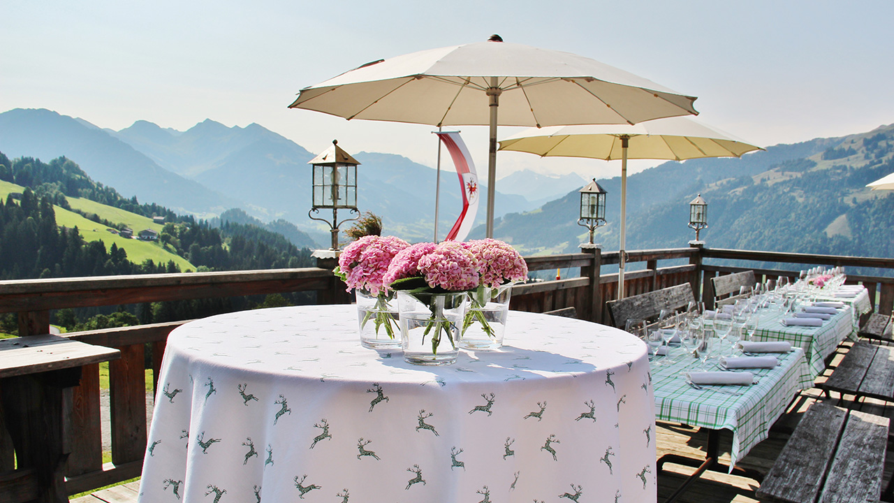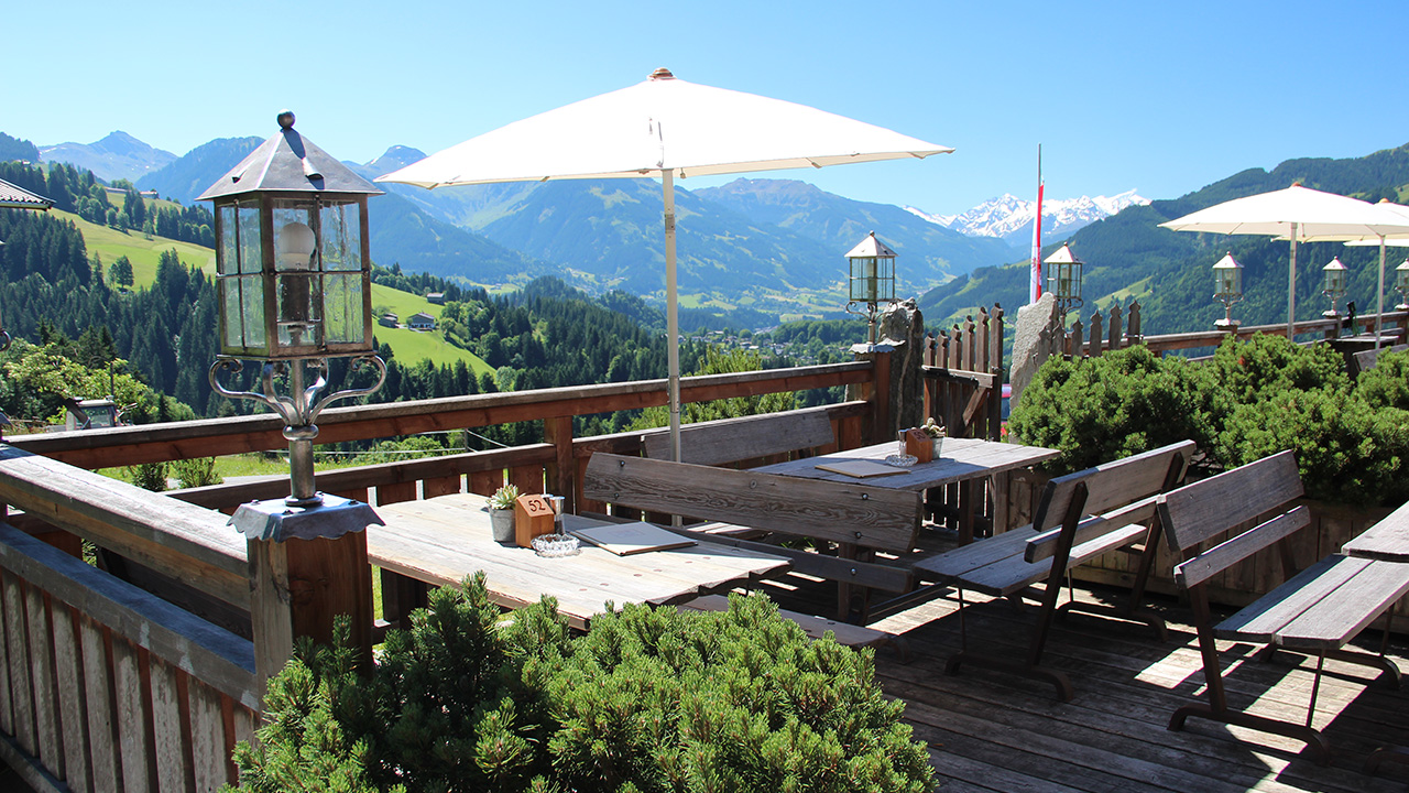 … heißt hier: tolle Südlage auf 1060 Metern am Kitzbüheler Horn mit einem grandiosen Bergpanorama von der Terrasse auf das Tal und die Berge von Kitzbühel. Das Ganze wird nur übertroffen von der „hoameligen“ Atmosphäre des bereits 1461 erwähnten Berghofes. Und natürlich von der unvergleichlichen Gastfreundschaft der Familie Zehentner. Vor allem aber ist es die ehrliche Küche mit saisonalen Gerichten und regionalen Herzhaftigkeiten, die Genusshungrige anzieht. Diese stoßen dann am liebsten an mit selbstgemachtem Tannenwipfel Gin Spritz (den gibt es auch wirklich nur hier). Alles in Allem: Ein außergewöhnliches Platzerl zum Verlieben – ideal auch für besondere Anlässe und Events in den gemütlichen Stuben. Erreichbar ist der Gasthof locker mit dem Auto, aber natürlich auch mit dem Bike, zu Fuß oder per Ski.